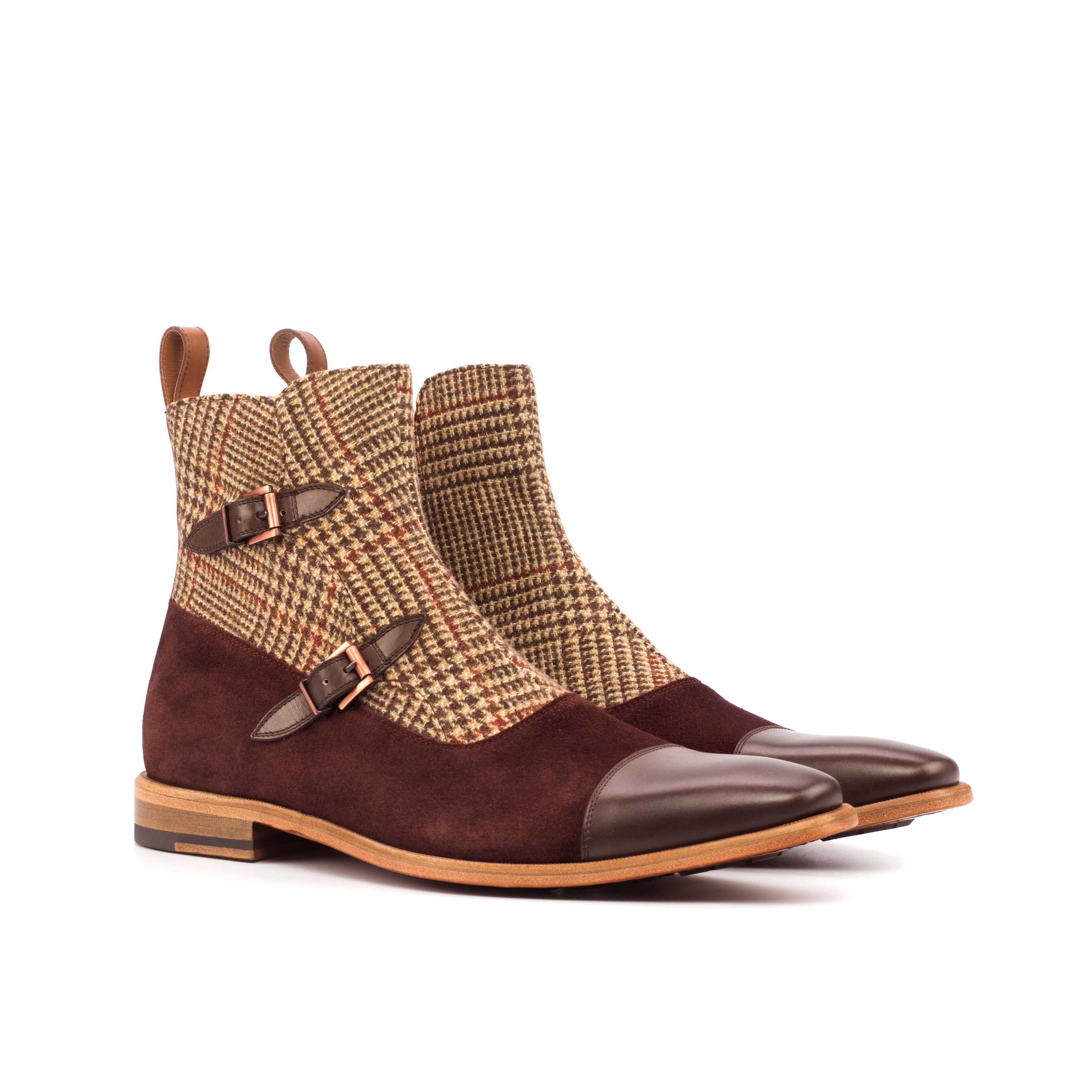 Materials: tweed sartorial + burgundy lux suede + med brown painted calf + dark brown painted calf