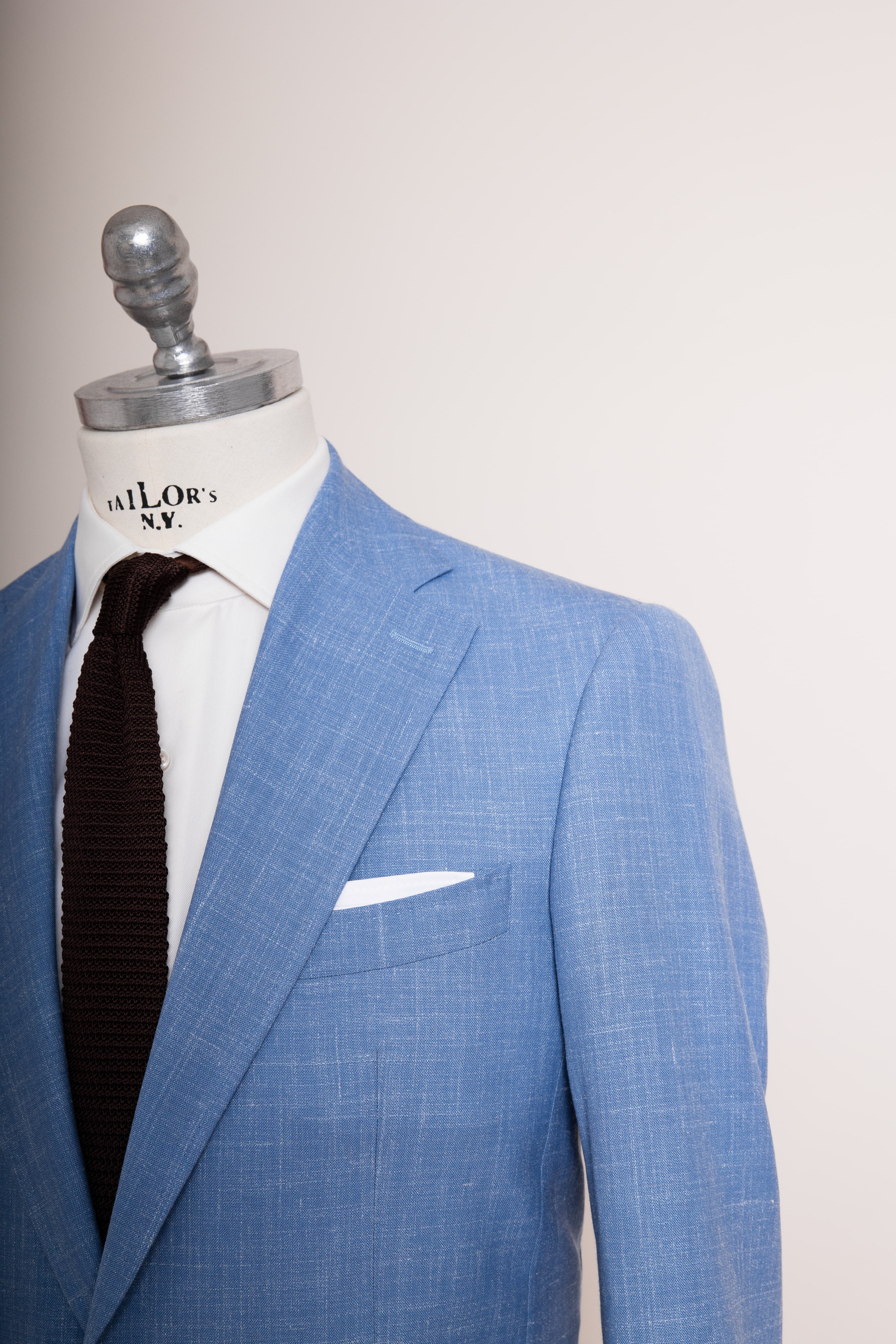 Frischer Wind für starke Auftritte: Azure Affair ist der Inbegriff von moderner Sommer-Eleganz. Das himmelblaue Tuch aus luftigem Stoff bringt Leichtigkeit in jede Garderobe, ohne dabei an Klasse zu verlieren. Der schlanke Schnitt, gepaart mit feinen Details wie dem Ticket-Pocket und der sanften Textur, macht diesen Anzug zum perfekten Begleiter für sonnige Geschäftstermine, Rooftop-Partys oder mediterrane Hochzeiten. Akzentuiert mit dunkler Krawatte und weißem Einstecktuch zeigt Azure Affair, dass Stil keine Saison kennt. Cool. Charismatisch. Californian Vibes, ganz ohne Strandklischee.