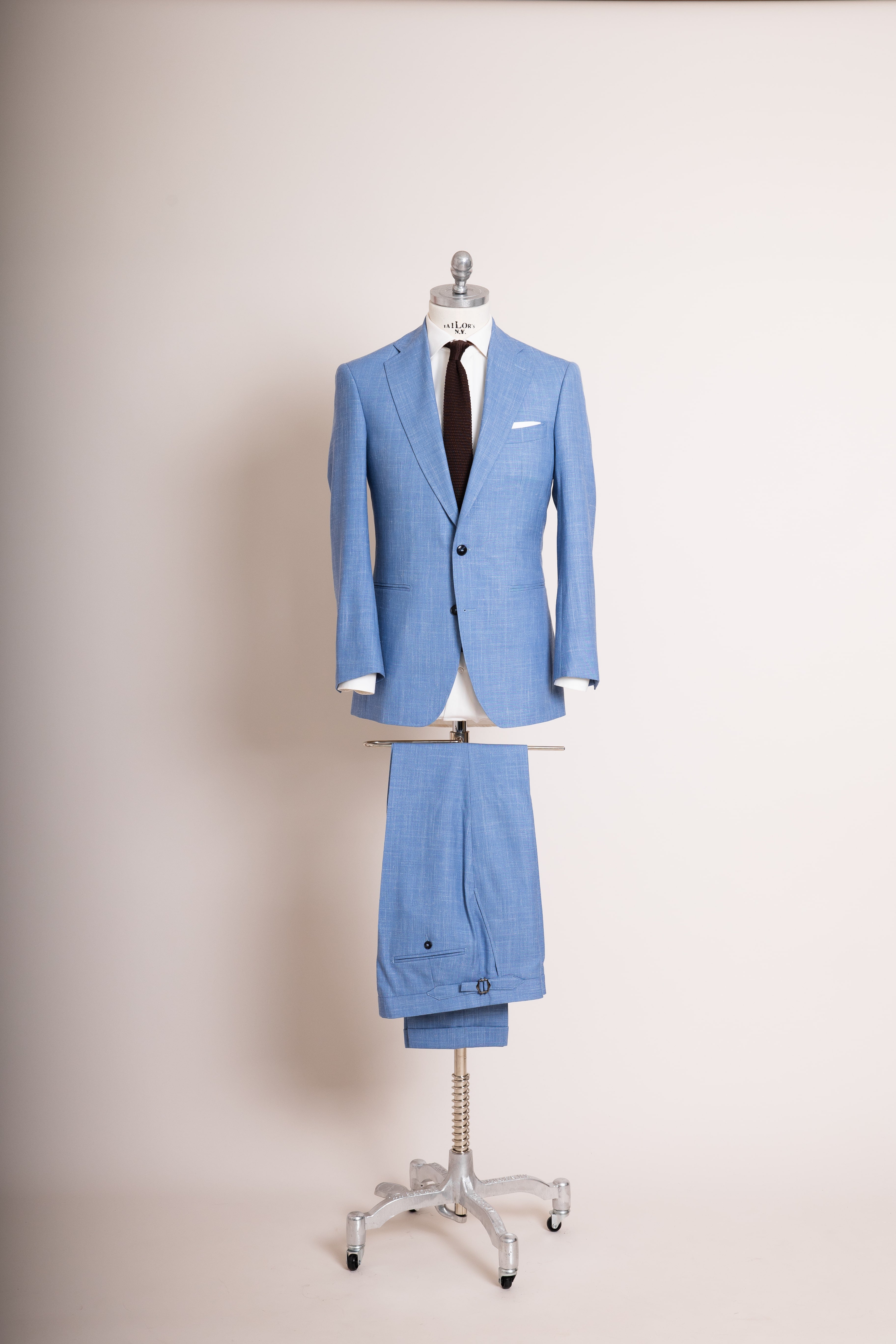 Anzug Azure Affair verkörpert moderne Sommer-Eleganz: ein himmelblauer Anzug aus leichtem Stoff mit schlanker Silhouette sanfter Textur. Perfekt für sonnige Business-Termine, Rooftop-Partys oder mediterrane Hochzeiten. Cool, charismatisch – Stil mit kalifornischer Leichtigkeit.