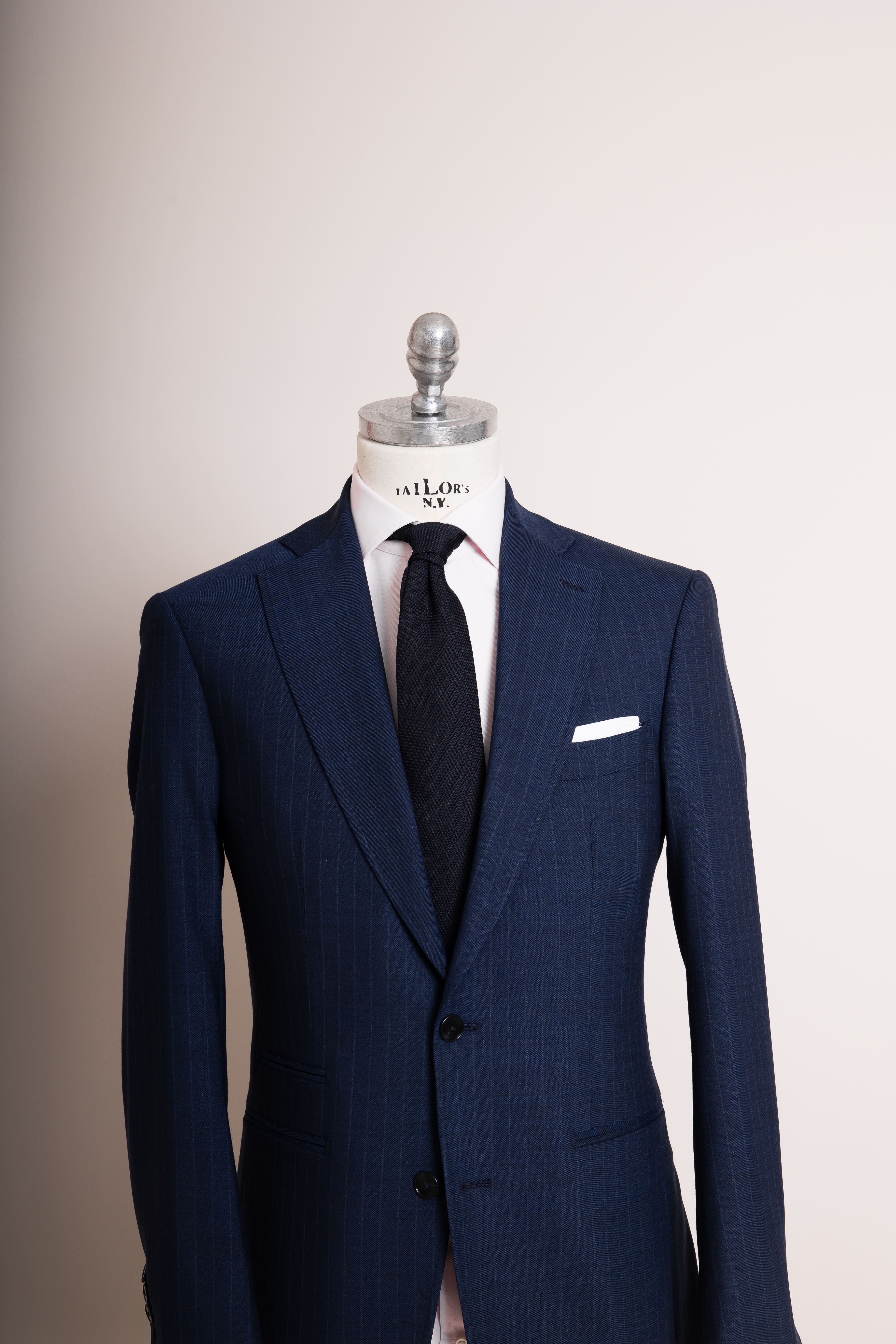 Anzug Blueprint Stripes definiert klassische Eleganz neu: ein tiefblauer Nadelstreifenanzug mit klarer Linie und souveräner Ausstrahlung. Die feinen Streifen verleihen Dynamik und Stil, perfekt für Business und formelle Anlässe. Präzise, professionell und pointiert elegant.