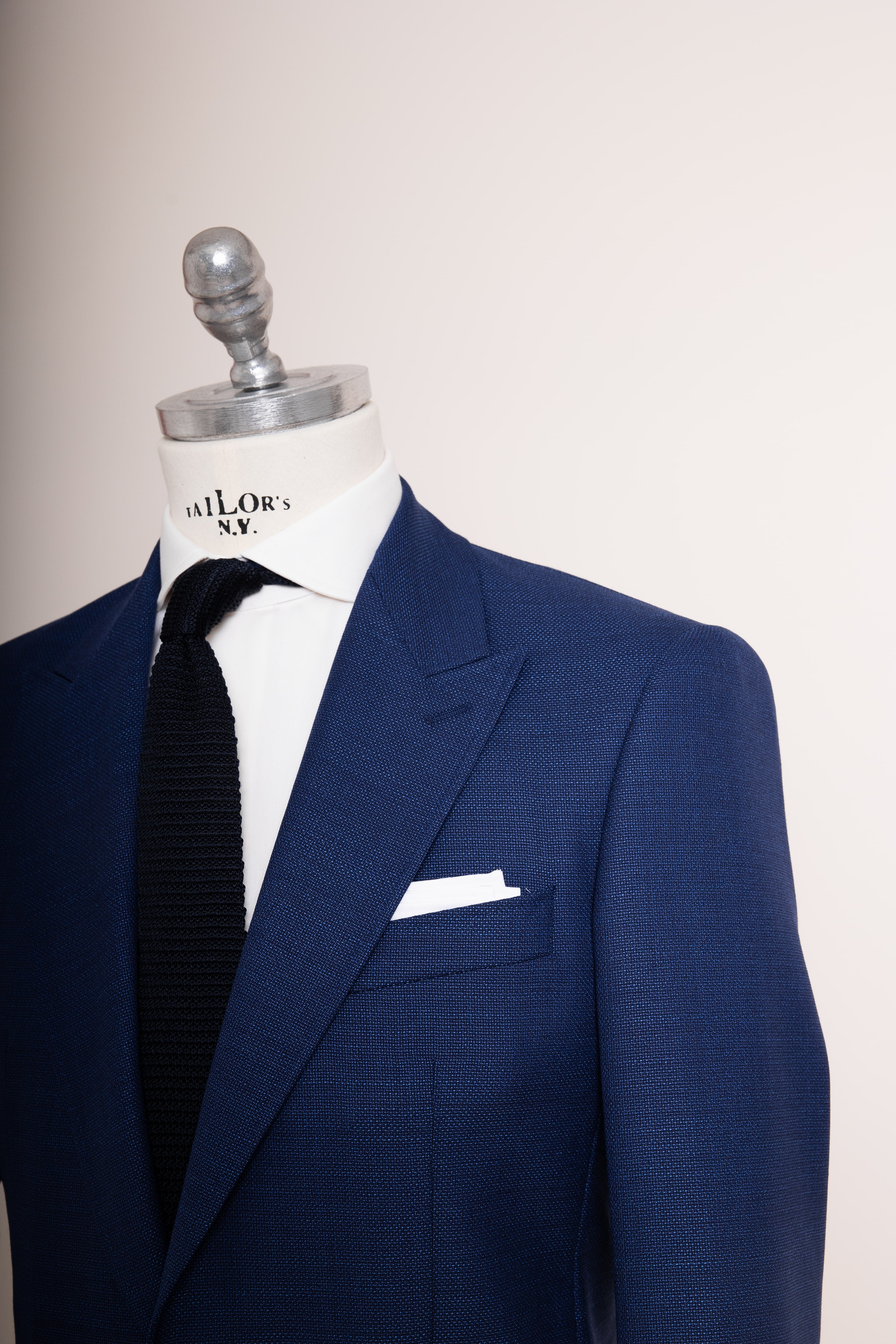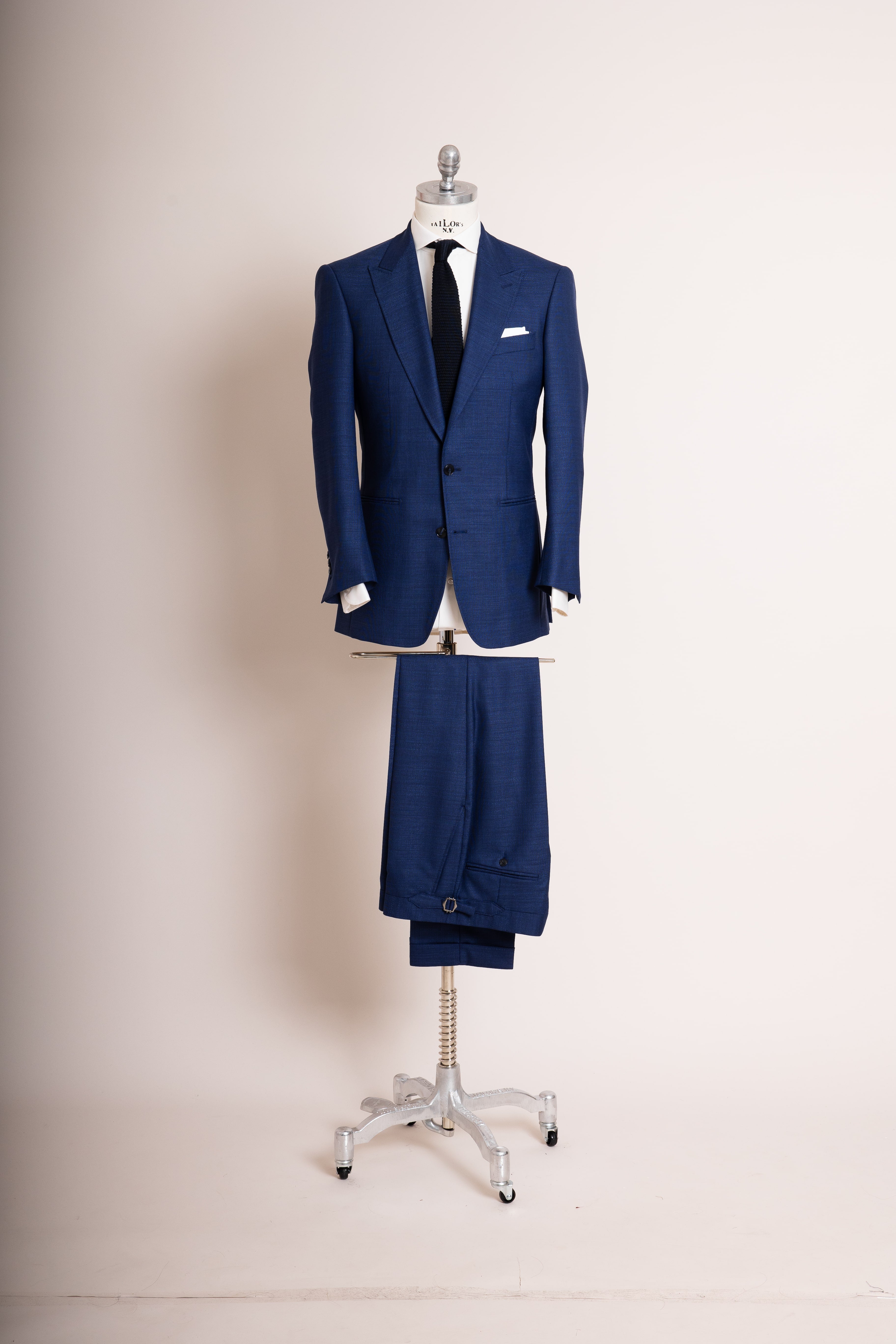 Anzug Azure Spirit verkörpert moderne Frische und klassische Eleganz: mittelblaue Fresco-Wolle, leicht, strukturiert und brillant in der Farbe. Ideal für warme Tage und formelle Anlässe, stilvoll, souverän und mühelos tragbar.