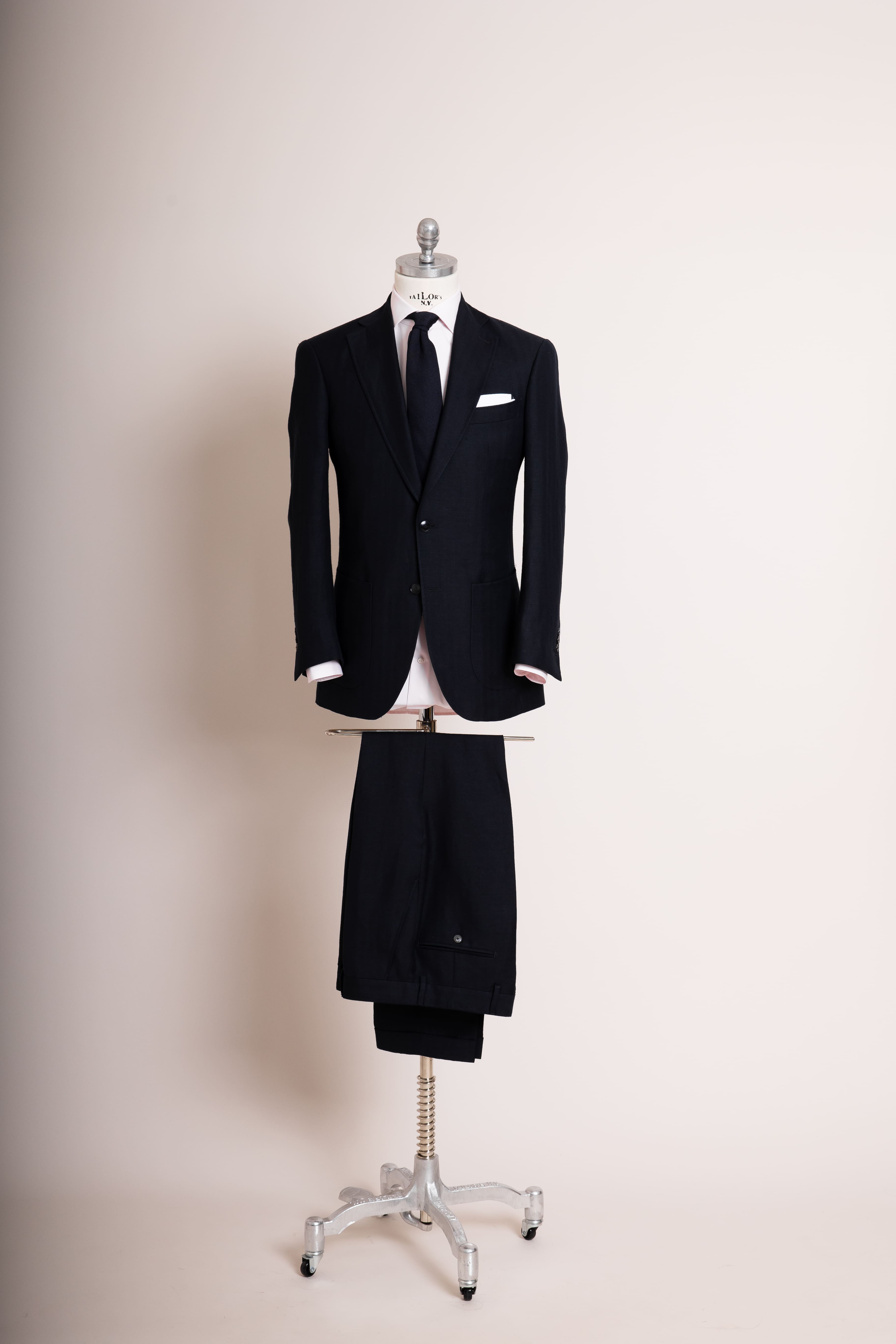 Anzug Herringbone Heritage steht für moderne Noblesse und subtile Raffinesse: ein tiefblauer Anzug im feinen Fischgrätmuster mit eleganter Struktur und schlankem Schnitt. Perfekt für Business und formelle Anlässe, markant im Detail, makellos im Auftritt.