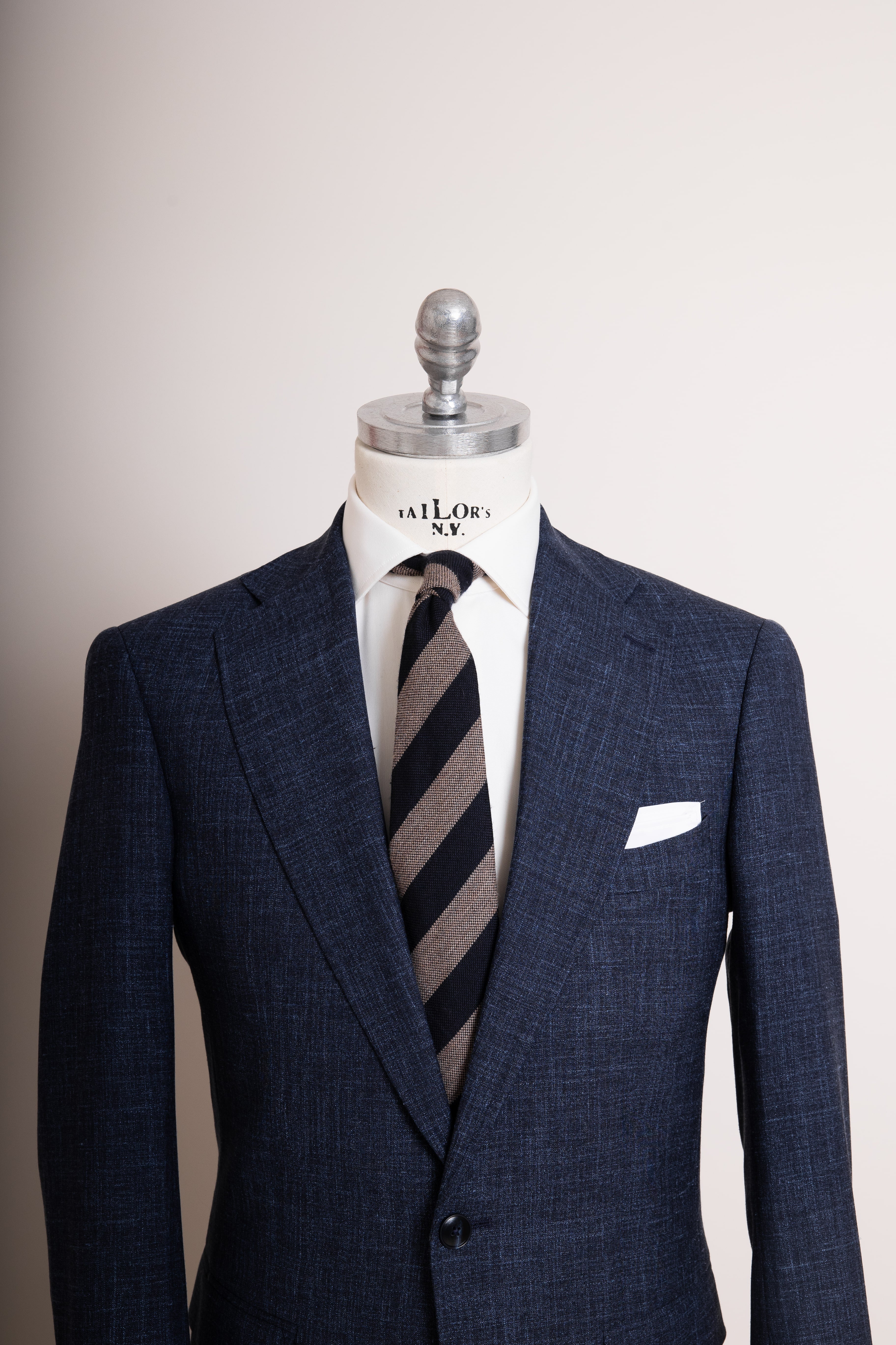 Eleganz, die keine Worte braucht: The Midnight Milano ist ein Meisterwerk maskuliner Raffinesz. Gefertigt aus einem tiefblauen, fein strukturierten Stoff, verbindet dieser Anzug italienische Leichtigkeit mit britischer Präzision. Der körperbetonte Schnitt, das markante Revers und das cleane Sakko-Design machen ihn zur idealen Wahl für Business, Dinner oder Date. Das Statement-Upgrade: ein breiter Streifen in der Krawatte, der Charakter beweist - genau wie der Mann, der ihn trägt. Klassisch, kompromisslos, charismatisch. Anziehen. Auftreten. Abheben.