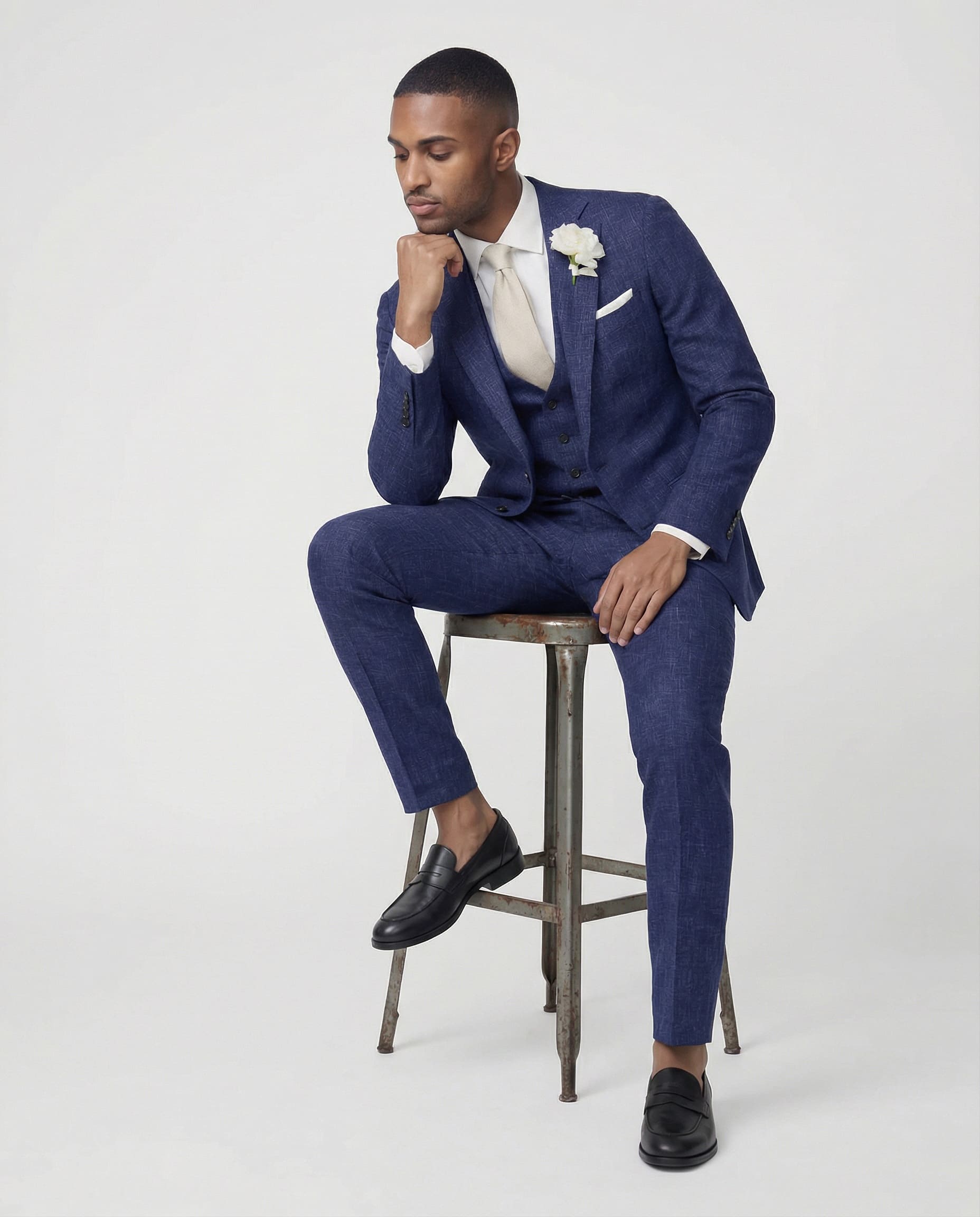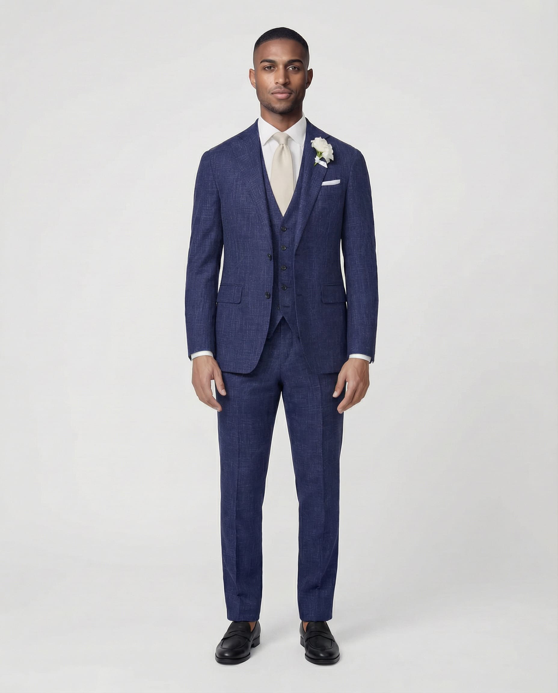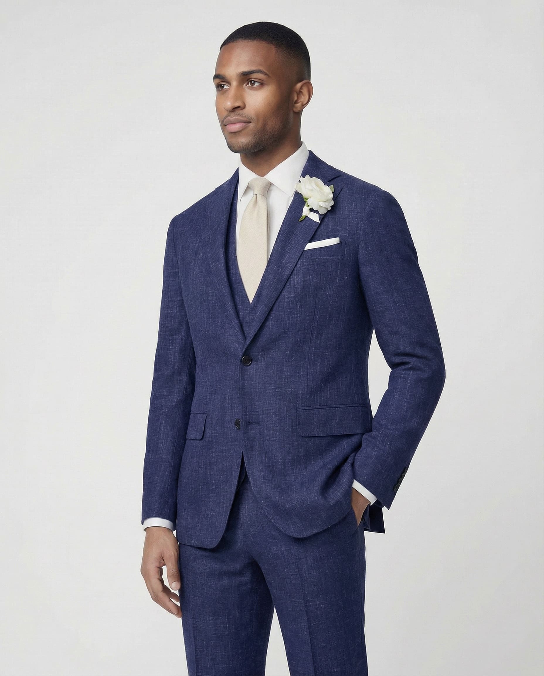 Frisch, modern und gemacht für sonnige Tage: Unser mittelblauer Sommeranzug aus Wolle, Seide und Leinen bringt Leichtigkeit und Eleganz in Einklang. Die feine Textur verleiht Charakter, die Materialmischung sorgt für angenehmen Tragekomfort – perfekt für Hochzeiten und besondere Sommermomente.