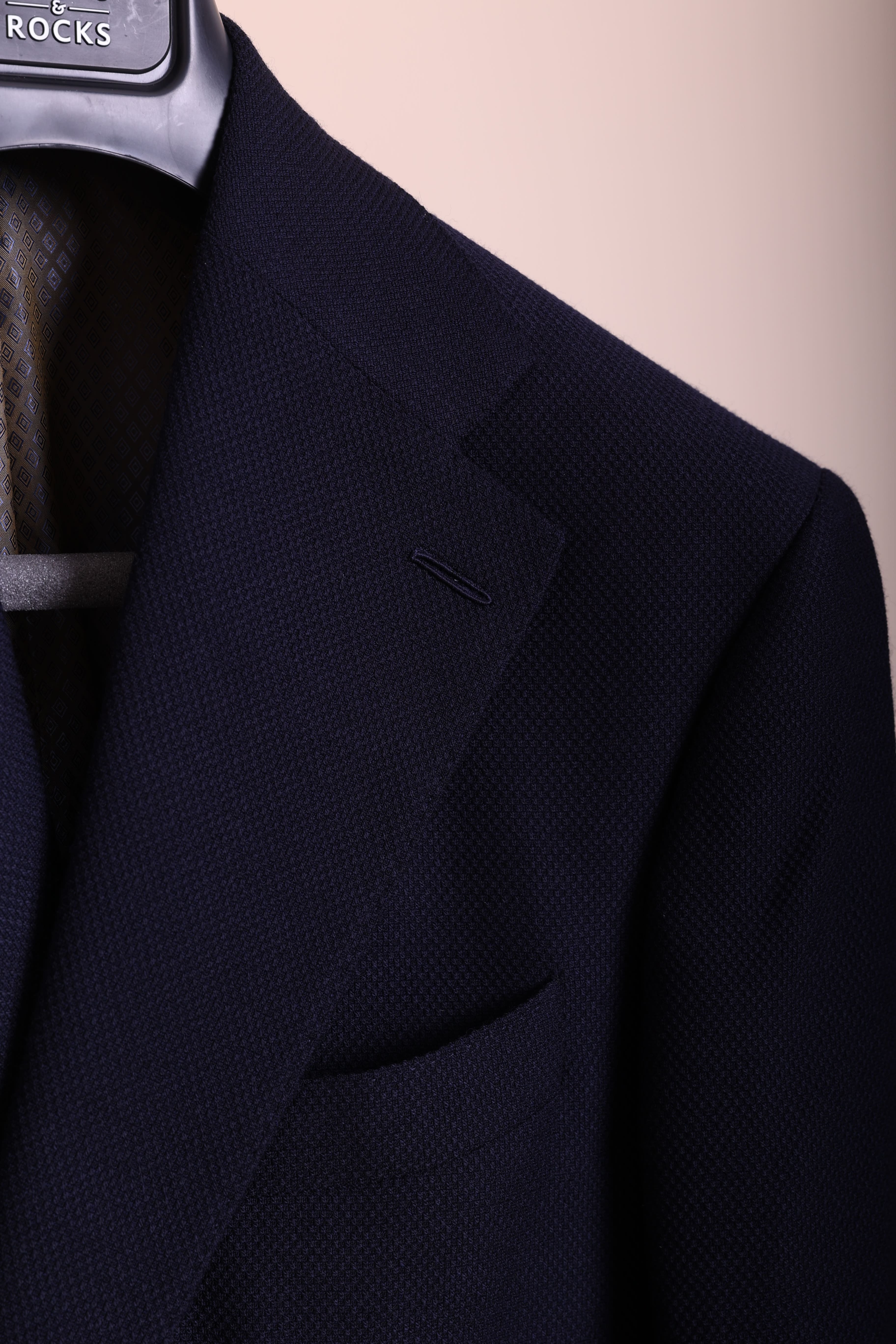 Ein navyfarbenes, strukturiertes Sakko kombiniert mit grauer Pinpoint-Hose bildet einen zeitlosen, stilvollen Look für Business und Dinner. Die mikrowürfelige Struktur verleiht Tiefe, beide Teile bestehen aus atmungsaktiver, formstabiler Wolle und funktionieren ganzjährig – elegant, modern und dezent.