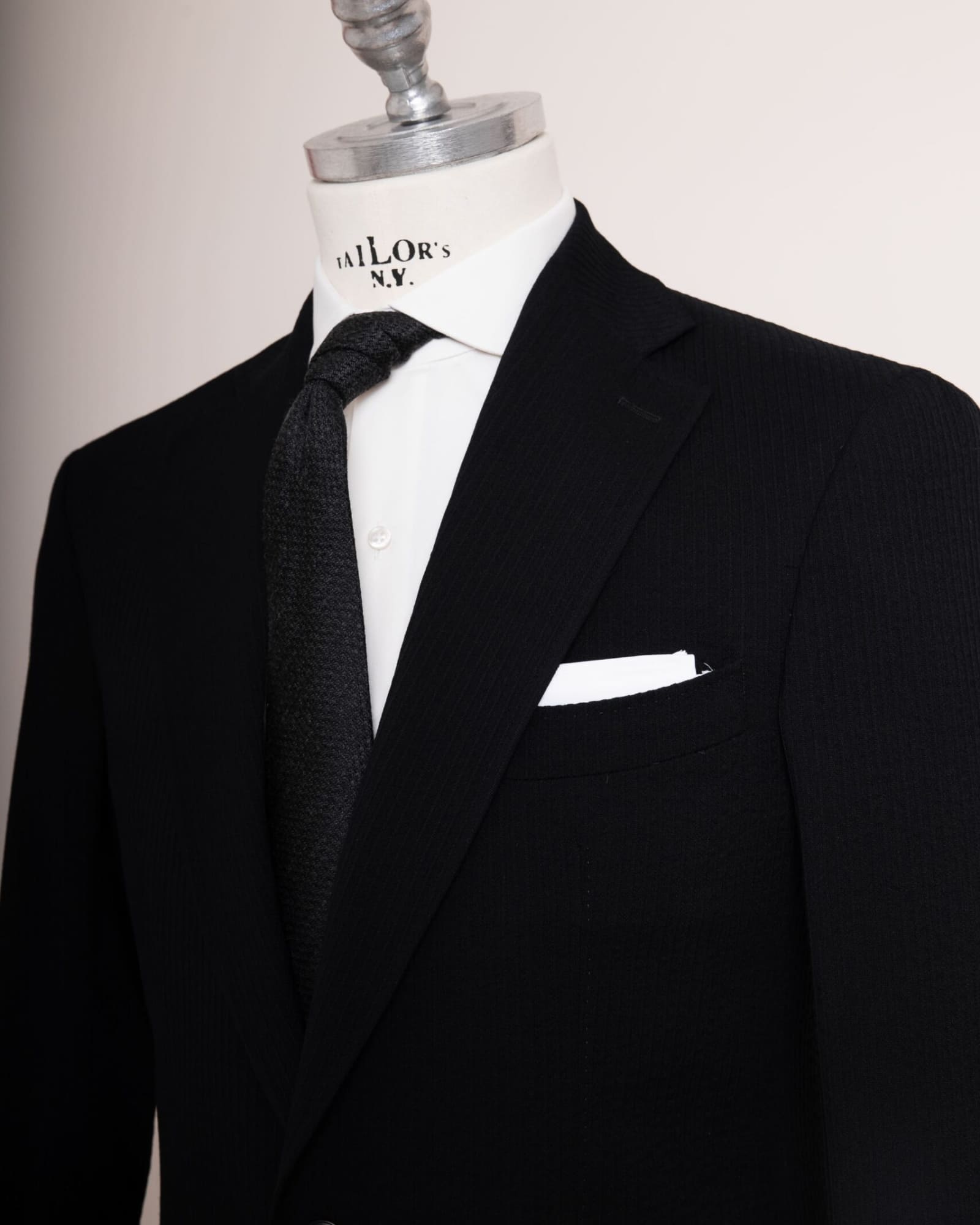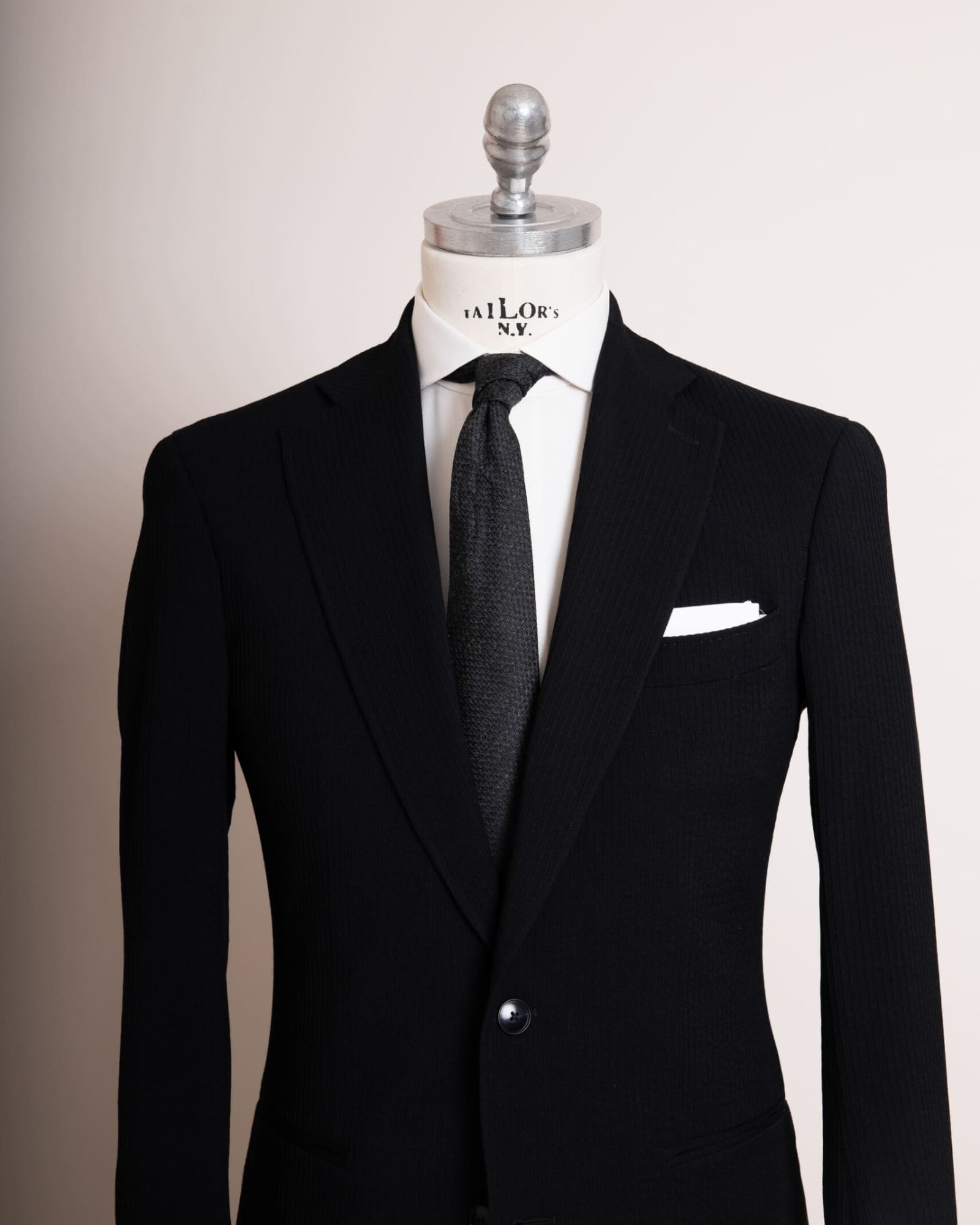 Schwarz wie die Nacht und doch leicht wie der Sommer: Noir Breeze ist der Seersucker-Anzug für Männer, die Coolness mit Klasse verbinden. Der tiefschwarze Stoff mit charakteristischer Struktur sorgt für elegante Textur, angenehme Luftzirkulation und einen Look, der bei Hitze souverän bleibt.