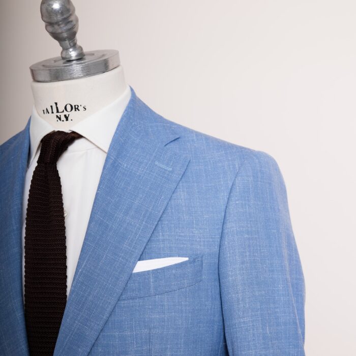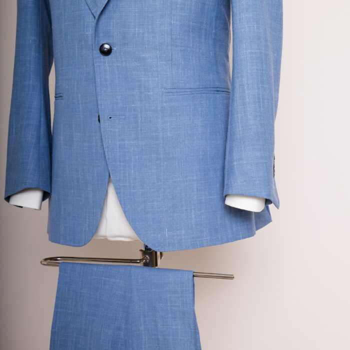 Frischer Wind für starke Auftritte: Azure Affair ist der Inbegriff von moderner Sommer-Eleganz. Das himmelblaue Tuch aus luftigem Stoff bringt Leichtigkeit in jede Garderobe, ohne dabei an Klasse zu verlieren. Der schlanke Schnitt, gepaart mit feinen Details wie dem Ticket-Pocket und der sanften Textur, macht diesen Anzug zum perfekten Begleiter für sonnige Geschäftstermine, Rooftop-Partys oder mediterrane Hochzeiten. Akzentuiert mit dunkler Krawatte und weißem Einstecktuch zeigt Azure Affair, dass Stil keine Saison kennt. Cool. Charismatisch. Californian Vibes, ganz ohne Strandklischee.