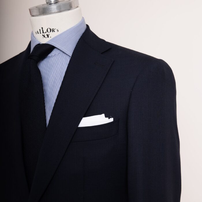 Der Navy Essential ist die Quintessenz klassischer Herrenmode. Ein tiefblauer Anzug, der in keiner Garderobe fehlen darf. Gefertigt aus einem feinen, leicht strukturierten Tuch, bietet er die perfekte Balance zwischen Seriosität und modernem Anspruch. Mit seinem schmalen Schnitt, dem subtilen Glanz und dem harmonischen Zusammenspiel aus klassischem Blau, hellblauem Hemd und dunkler Krawatte steht dieser Anzug für souveränen Stil im Berufsalltag und bei formellen Anlässen gleichermaßen. Ein Allrounder, der nie aus der Mode kommt – diskret, edel, verlässlich.