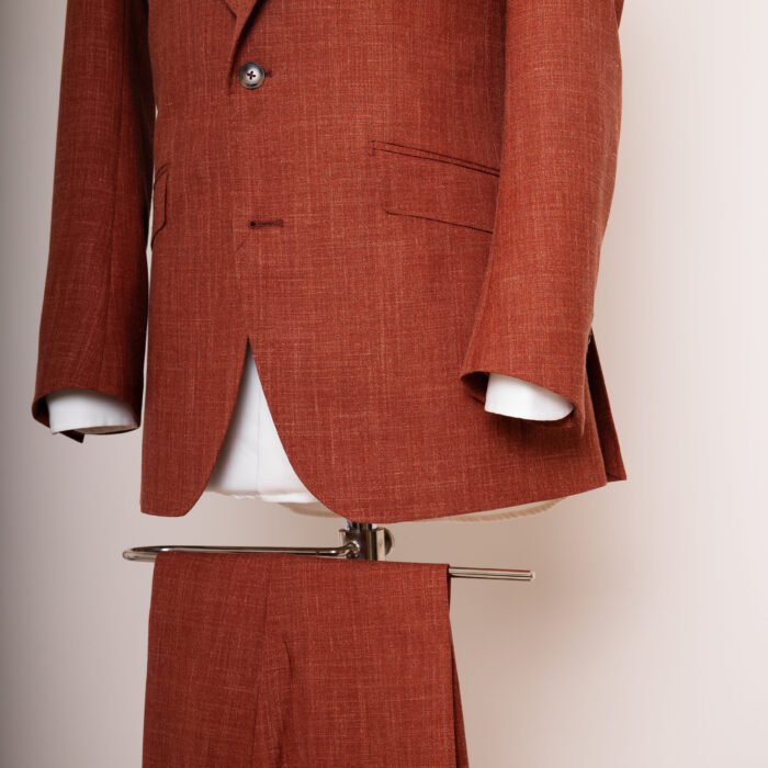 Sonnengeküsst, selbstbewusst, stilvoll anders: Toscana Flame ist der Anzug für Männer, die keine Angst vor Aufmerksamkeit habe, weil sie wissen, was sie tragen. Der warme Rostton erinnert an Terrakotta, mediterrane Sonnenuntergänge und italienische Nonchalance. Dieser Anzug vereint handwerkliche Präzision mit lebendiger Farbenergie, perfekt für sommerliche Events, kreative Business-Casual-Looks oder einfach einen starken Auftritt mit Leichtigkeit. Schmal geschnitten, klar definiert – ein Look, der auffällt, ohne laut zu sein. Für Individualisten mit Stilinstinkt. Warm. Wild. Weltgewandt.