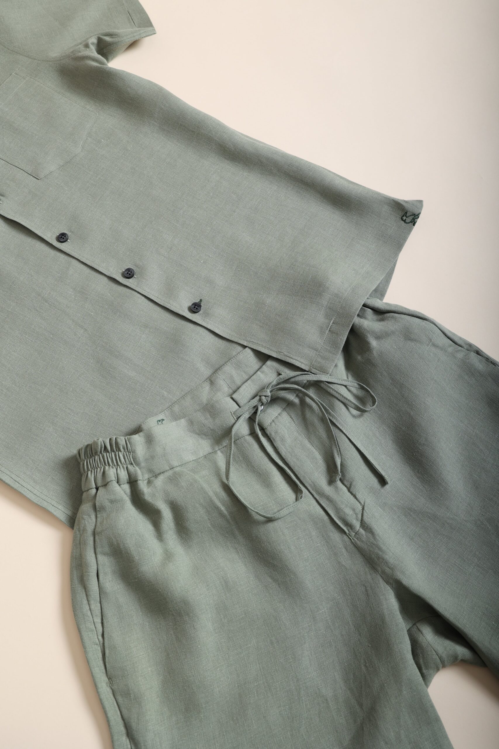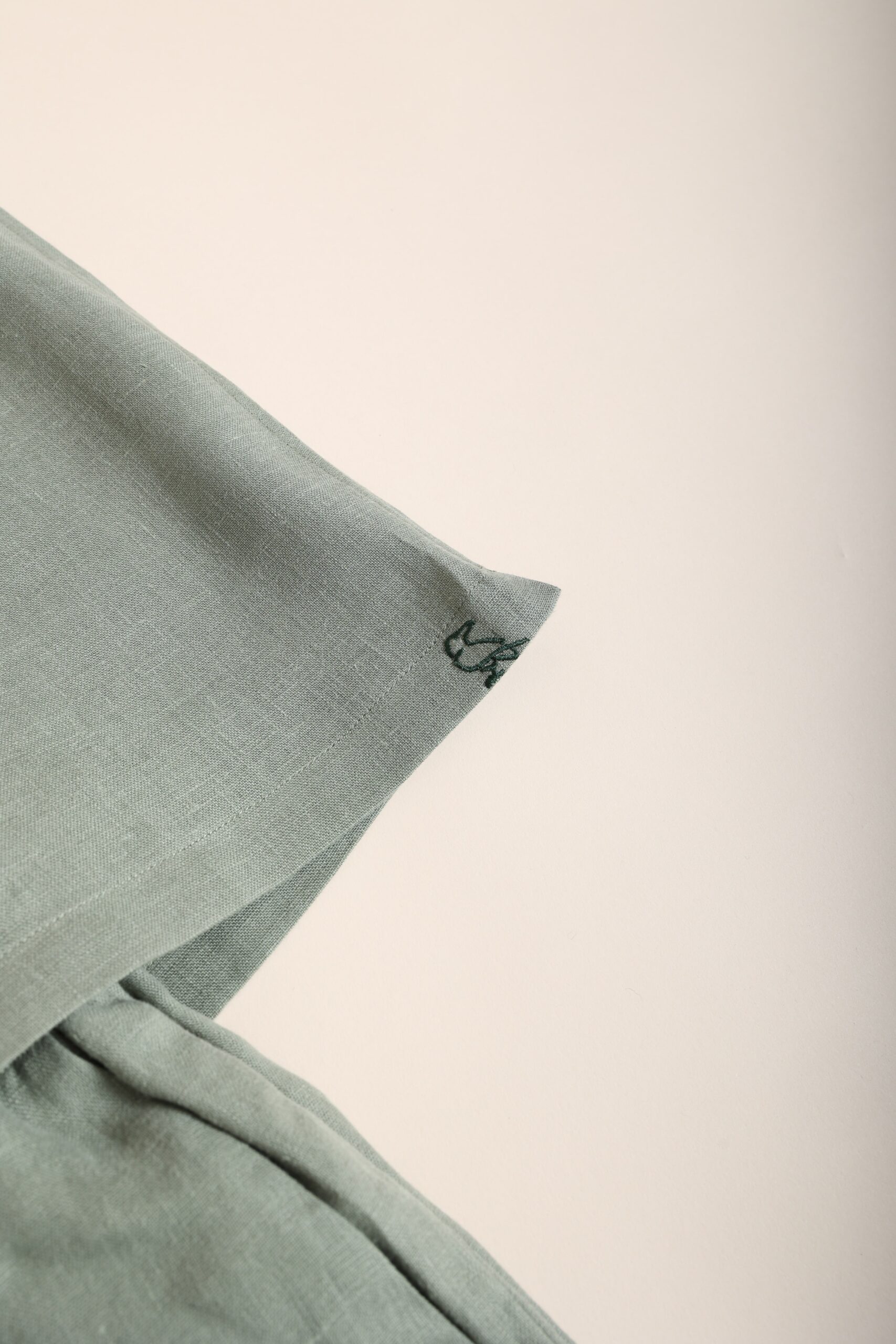 Gefertigt aus hochwertigem italienischem Leinen, trägt sich das Set angenehm leicht, ist atmungsaktiv und sorgt auch bei hohen Temperaturen für ein frisches Gefühl auf der Haut. Die Herstellung erfolgt in der EU, mit höchsten Ansprüchen an Qualität, Passform und faire Produktion.